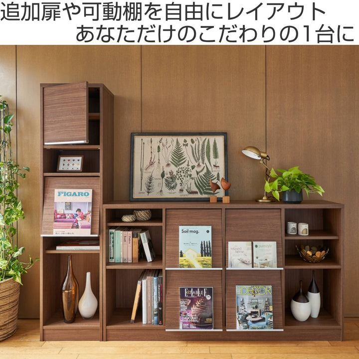 お気に入りの本や雑誌をディスプレイして、自分だけのレイアウトを楽しむことができます。隠しておきたい物は扉の中にスッキリと収納できるので、来客時にも便利です。