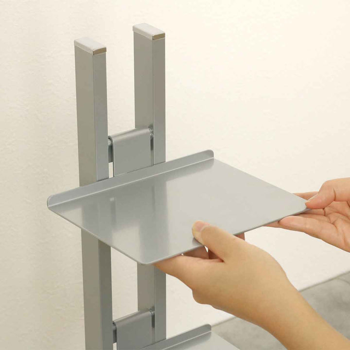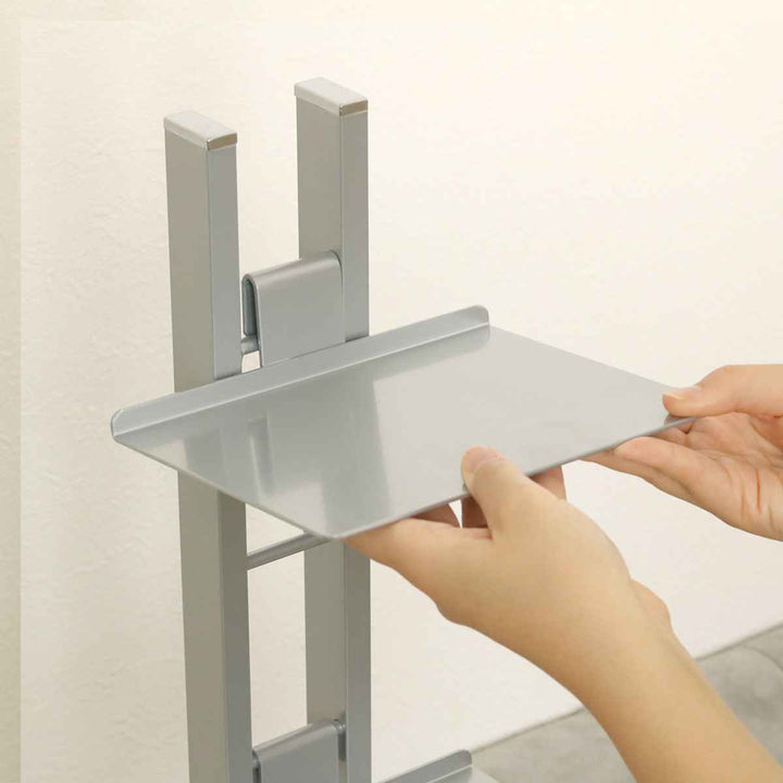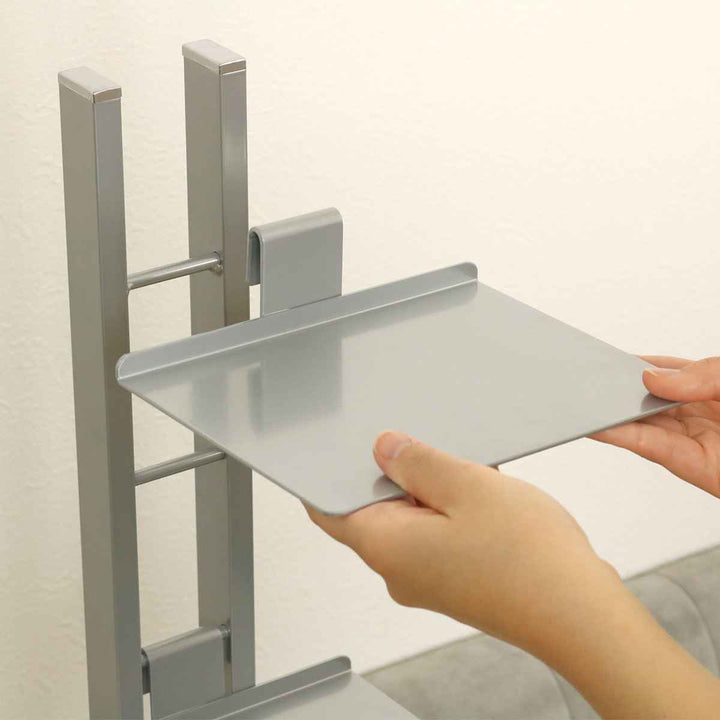 棚板はフック型になっており、手で持ち上げると取り外せるので、高さを簡単に変更することができて便利です。