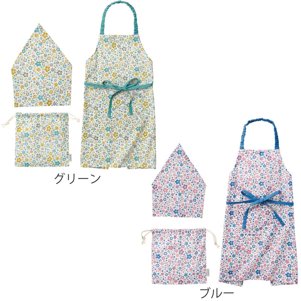 エプロン キッズ 3点セット 綿100% ポケット付き リサ 花柄