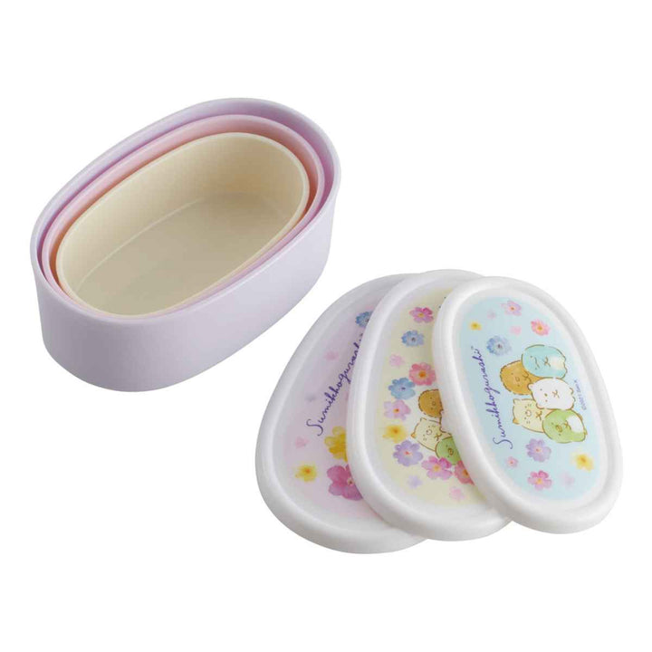 3サイズが1セットになった、ランチボックスです。抗菌加工が施されているのでお子様も安心です。大サイズが約400ml、中サイズが約280ml、小サイズが約180mlです。ご飯、おかず、デザートなどメニューによって容器を使い分けることができます。お弁当箱としてだけではなく、保存容器としてもお使いいただけます。