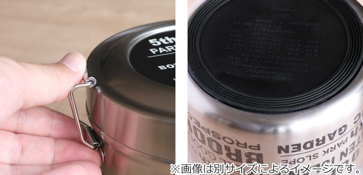 | 材質 | 本体、蓋:ステンレス(アクリル樹脂塗装) 止め具:ステンレス 中容器・中蓋:ポリプロピレン パッキン:シリコーンゴム 底板:エラストマー |
