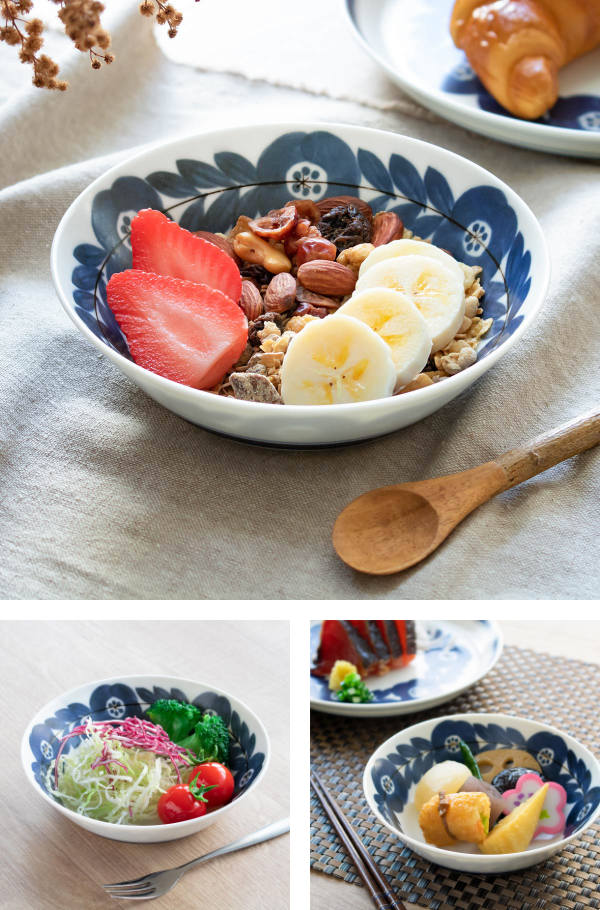 朝食のシリアルやフルーツ、サラダにちょうど良い大きさのボウルです。取り鉢としてもお使いいただけます。洋風だけでなく和風のお料理にも合うデザインです。カジュアルにも上品にも使えるので普段使いはもちろん、おもてなしにもぴったりです。