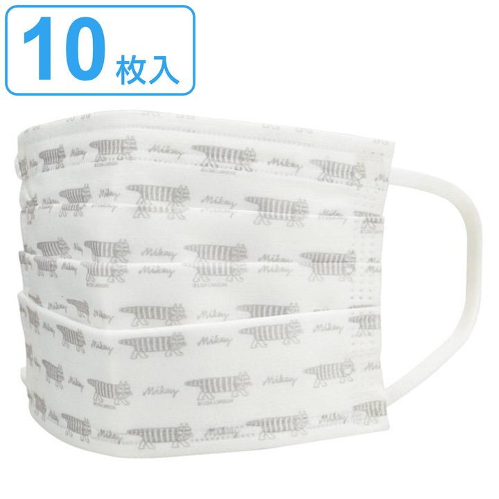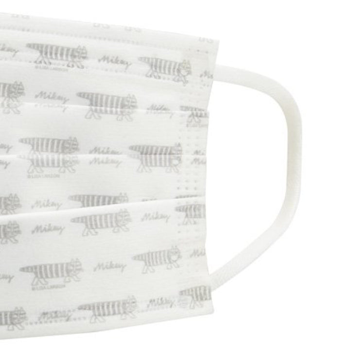 女性用の不織布プリーツマスクです。北欧スウェーデンを代表する陶芸家、LISA LARSON (リサラーソン)の定番人気の可愛い猫「マイキー」のデザインです。10枚入りです。※大人用です。