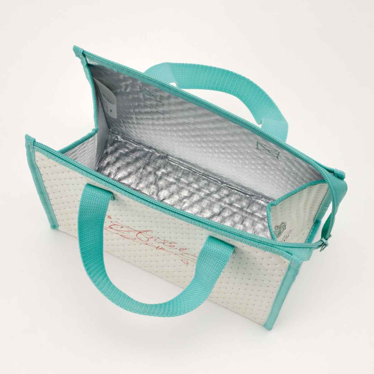 内側はアルミ蒸着素材なので外気からのバリア性が高く、保冷効果抜群です。保冷剤と合わせて使うことで保冷効果がアップします。