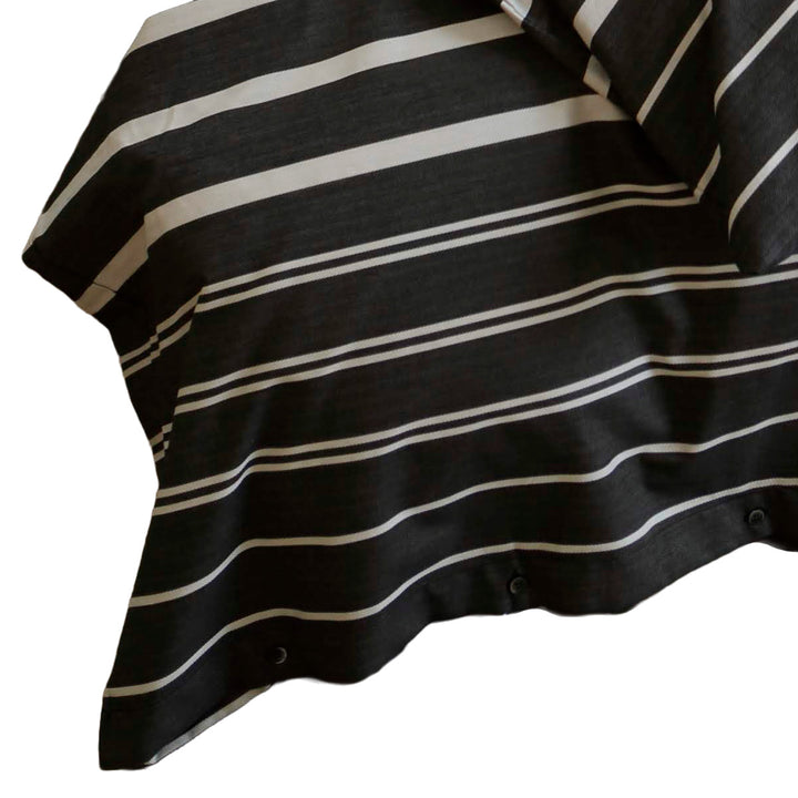 先染めの色糸で織り上げた綿100%の生地で、肌触りのいい掛け布団カバーです。ゼブラウッドの木肌感をイメージしたチャコールのモノトーンボーダーが、落ち着きのある空間を演出してくれます。