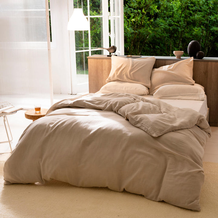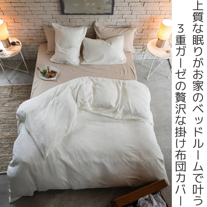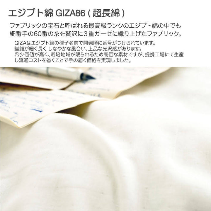 エジプト産超長綿を3重ガーゼに織り上げた、上品で贅沢な掛け布団カバーです。ふんわりと柔らかい肌触りが気持ちよく、上質な眠りがお家のベッドルームで叶います。