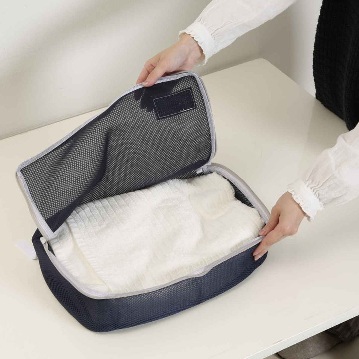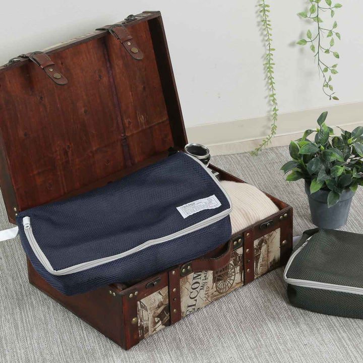 旅行時の衣類やタオルの仕分けに役立ちます。スーツケースにも入る大きさなので外出時のちょっとした着替えを入れるのにもちょうど良いサイズです。