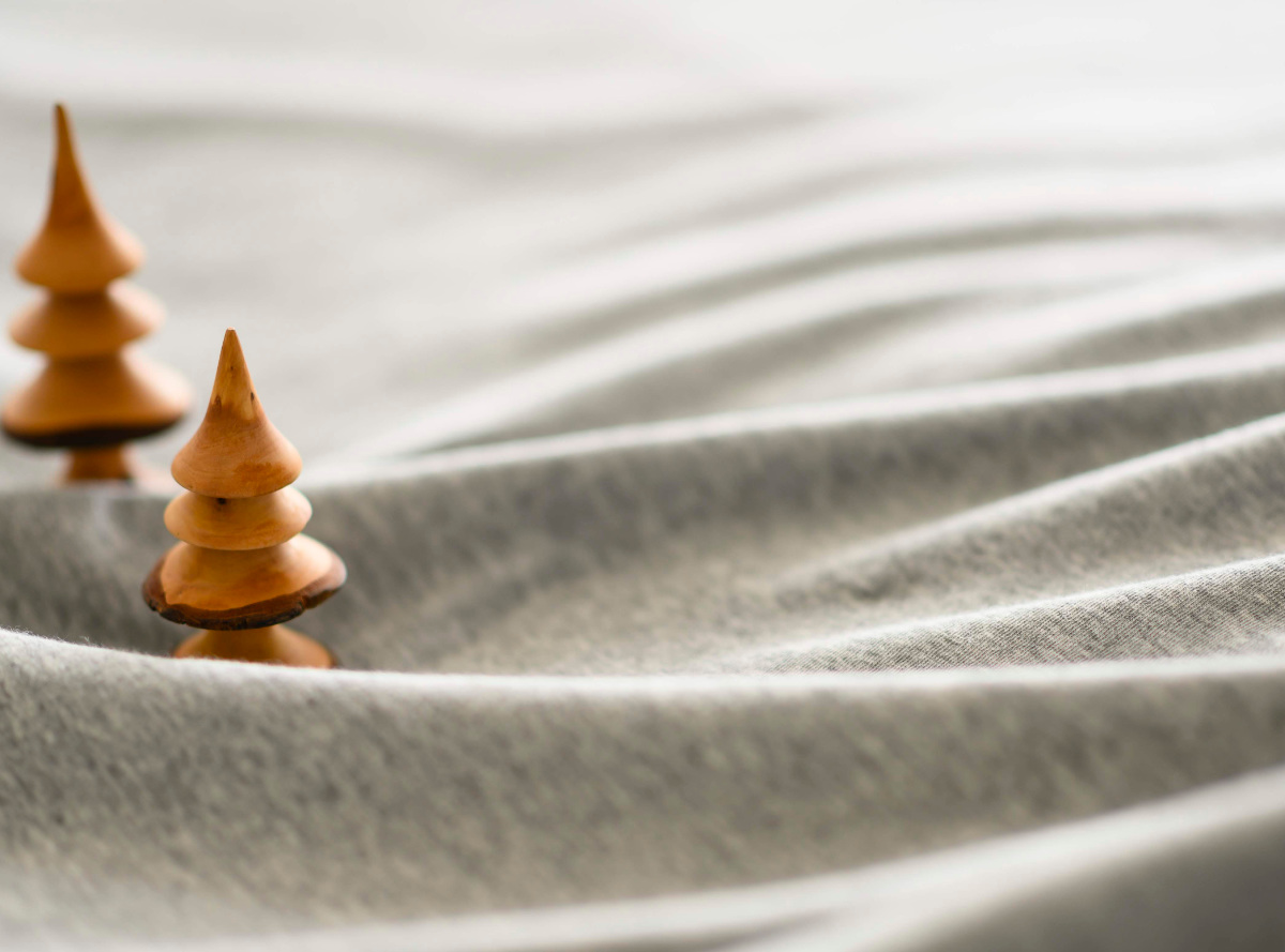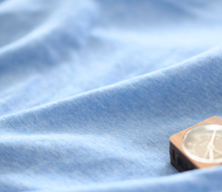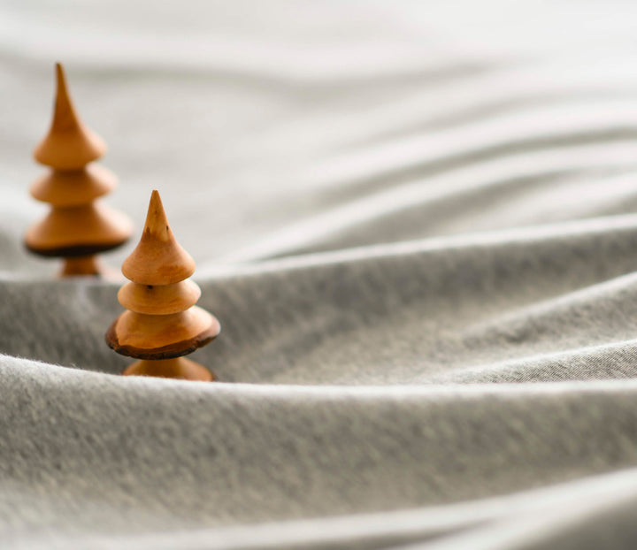 綿100%の杢糸を使って平編みしたニットを二重にし、部分的につなぎ合わせた接結ニットです。二重にすることで間に隙間が生まれ、空気をふくんでふんわり暖かく、洗うほどにやわらかい風合いになっていきます。よく伸びて肌あたりがやさしいので、ストレスなくお使いいただけます。