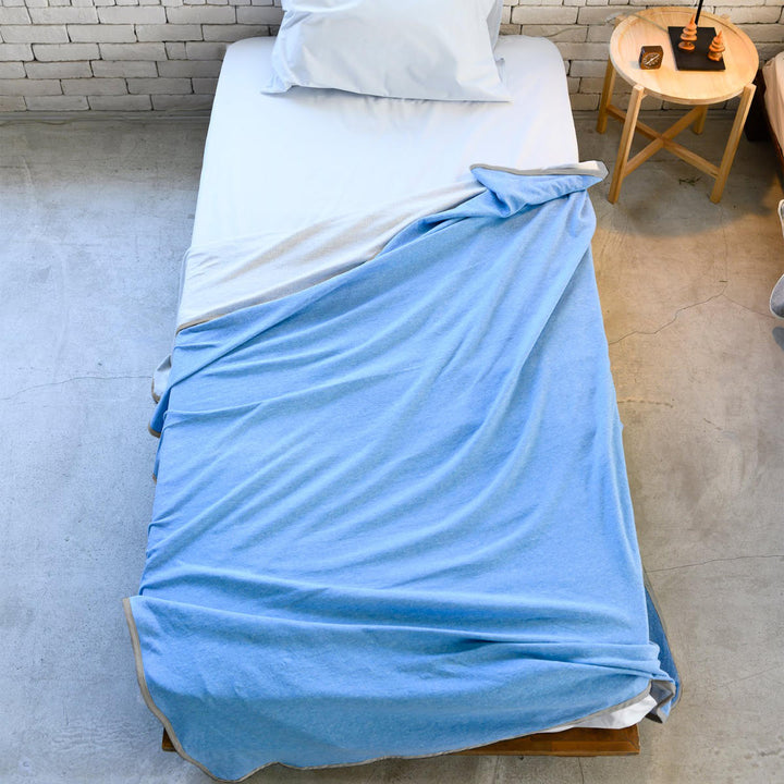 やわらく肌なじみのよいニットケットは、赤ちゃんの肌着やおくるみなどにも使用される、天然素材の綿を100%使用しています。化学繊維を使用していないので静電気も発生せず、肌の弱い方や小さなお子様にもおすすめの商品です。