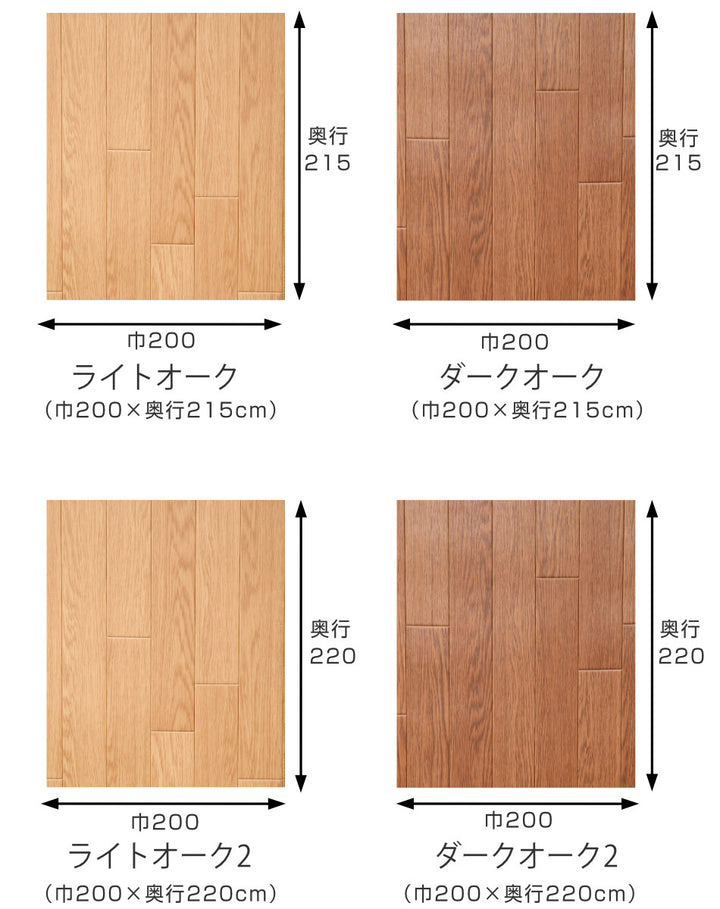 ラグ オーダーメイド 巾200×奥行215~220cm 滑り止め 吸着シート付き ダイニングラグ オーク