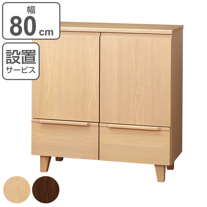 天然木ならではの木目が楽しめるキャビネット 幅80cm