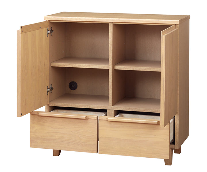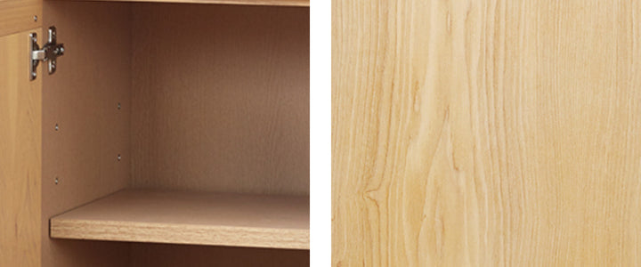 | 材質 | 天板・前板:天然木板目突板、無垢材 側板・棚板・背板:プリント化粧板 取手、脚部:無垢材 塗装:ウレタン樹脂塗装 |