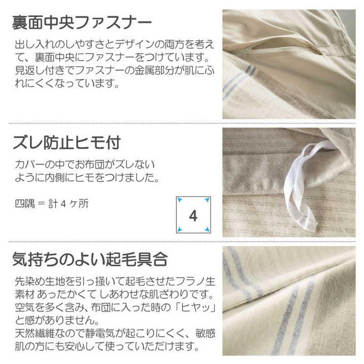 ズレ防止ヒモ付き カバーの中でお布団がズレないように、内側の四隅にヒモが付いています。 |
