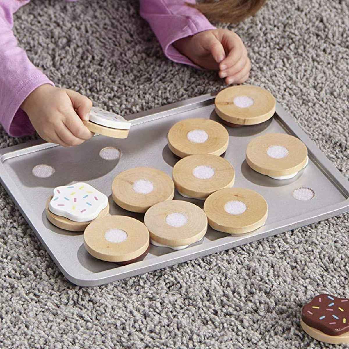 クッキー作りの材料はもちろん、スパチュラ、包丁、クッキー入れ、トレイ、ミトンが付属しています。このセットだけですぐにクッキー作りが楽しめるのも嬉しいポイントです。トッピングは付けたり外したりできるので、お子さまのお好みに合わせて遊ぶことができます。