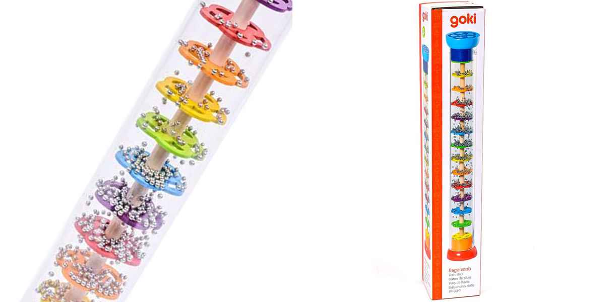上下をひっくり返すと「シャラシャラ」と雨のような心地良い音がなるおもちゃです。手指を動かしてマラカスのように振って演奏することで、様々な神経を鍛えることができ、運動神経にもよい影響を与えてくれます。また、お友達と一緒に演奏することで協調性も芽生えます。