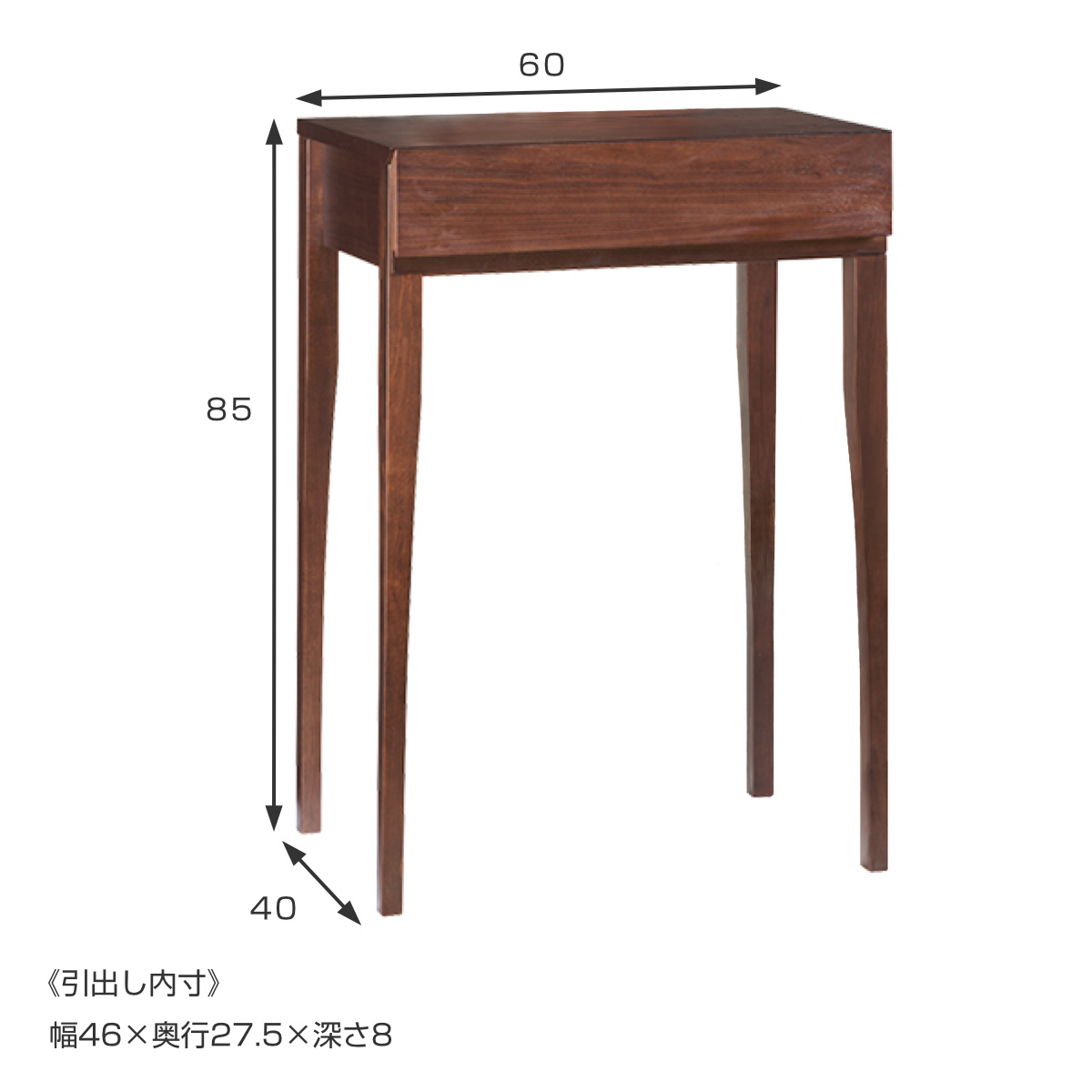 レトロモダンでシンプルなデザインのコンソールデスク 幅60cm