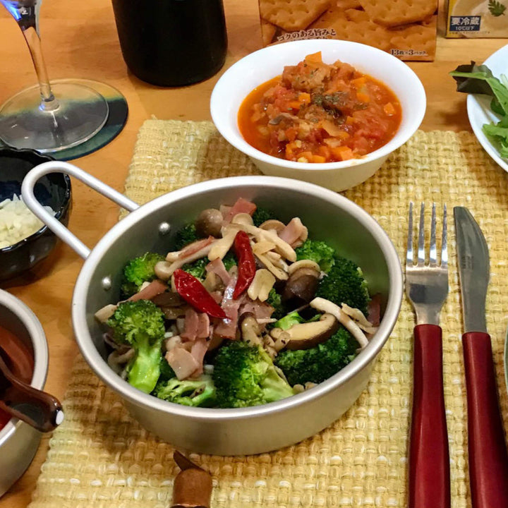 アウトドアでのご使用はもちろん、日常の食卓にもお使いいただけます。料理の下ごしらえとして、食材を混ざたり、和えたり、ボウルのように使うことが可能です。また、出来上がった料理や具材を入れてそのまま食器代わりにもお使いいただけます。