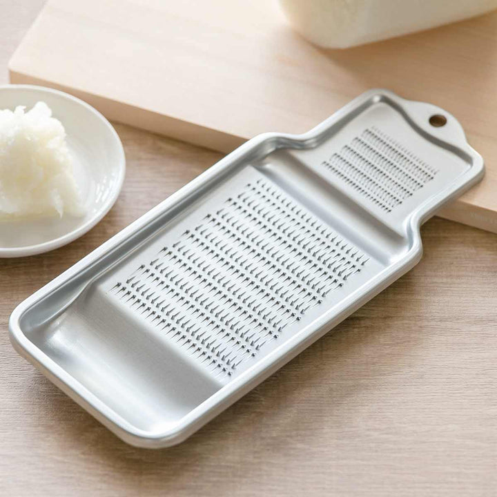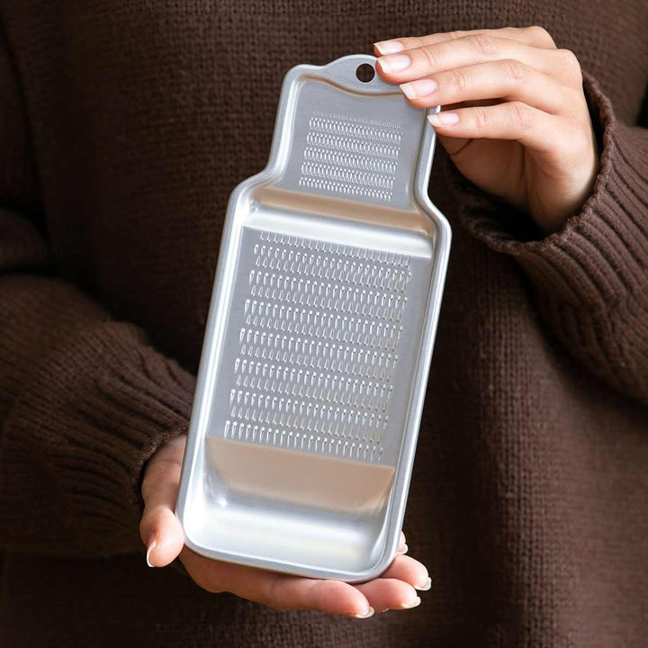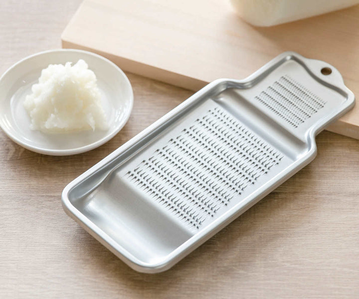 熟練の職人による独自の目立てが際立つアルミおろしです。サビに強く、耐食性に優れており、アルマイト加工がされているので、キズがつきにくくなっています。軽くて手に馴染みやすい昔懐かしいシンプルなデザインは、長くご愛用いただける和の逸品です。