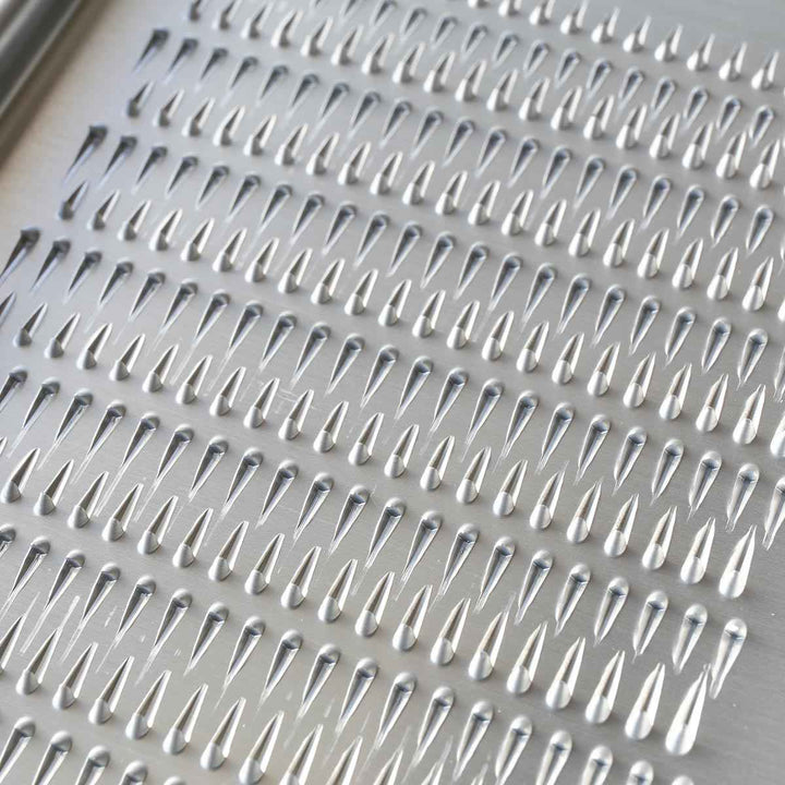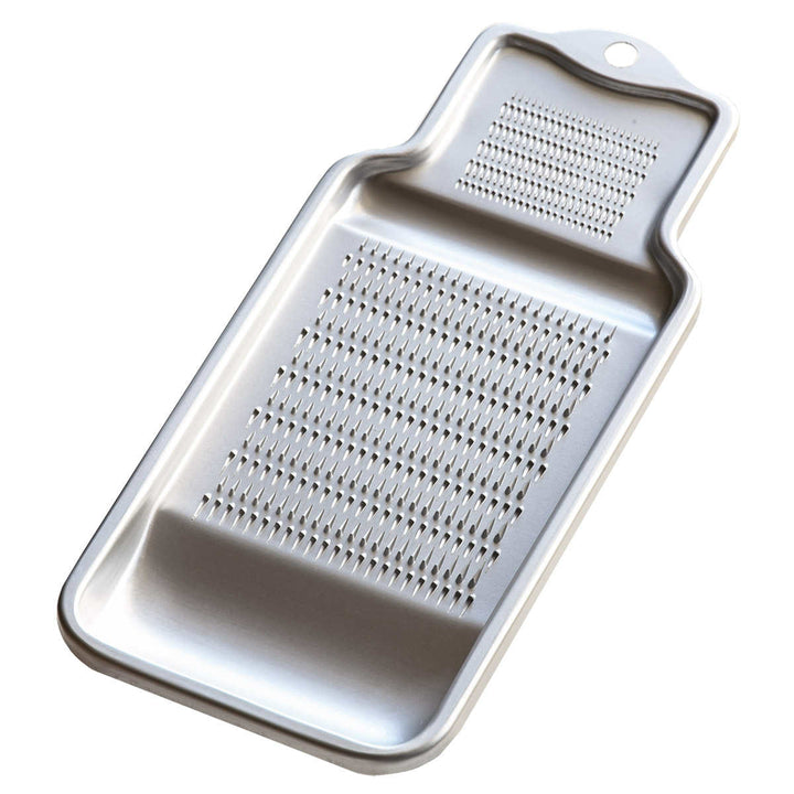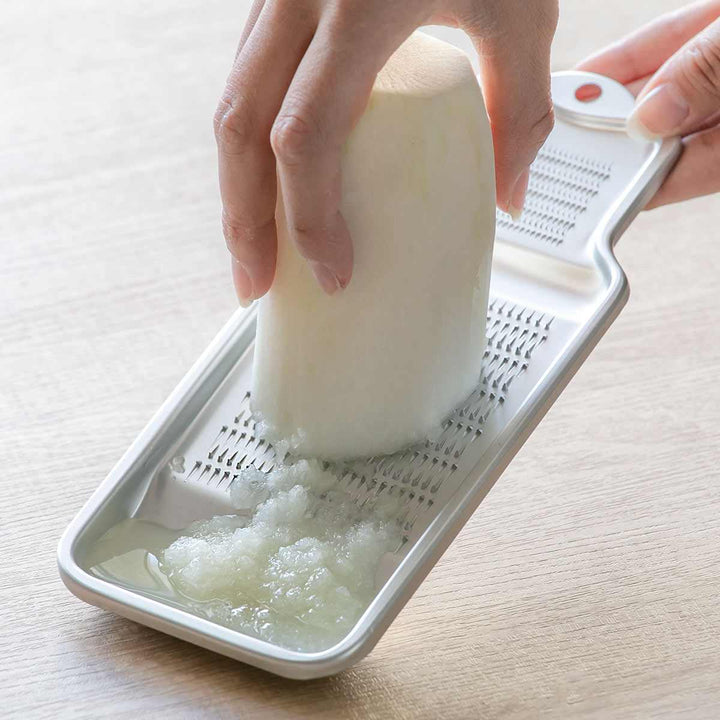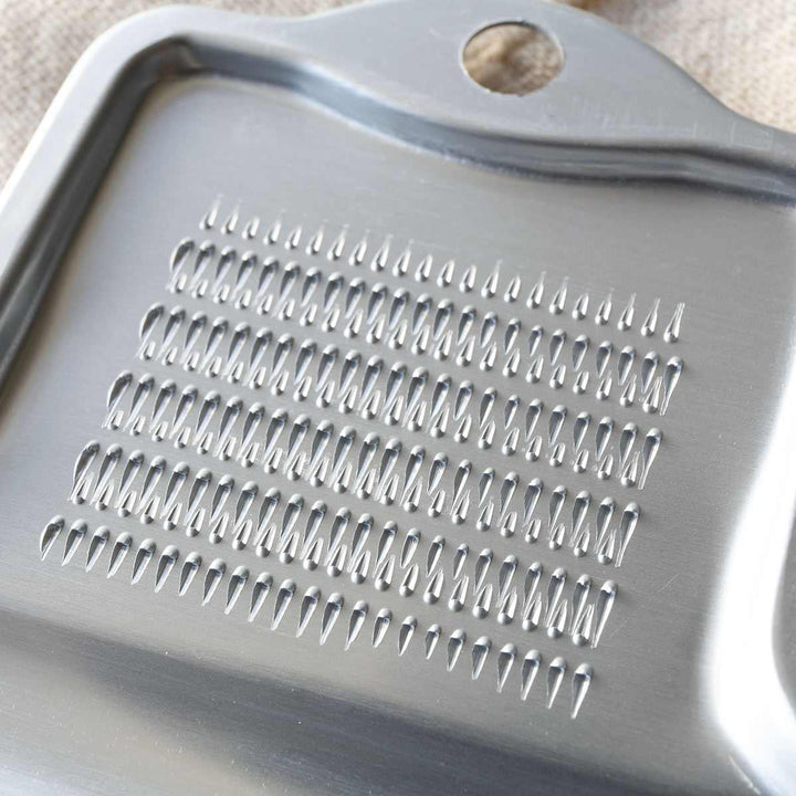 刃の形状の微妙な違いを施すことにより、刃が様々な面に当たり、向きを何度も変えることなく軽い力でスムーズにすりおろすことができます。粗目は大根おろしやりんご、細目はしょうがやわさびなどの薬味をおろすのに適しています。