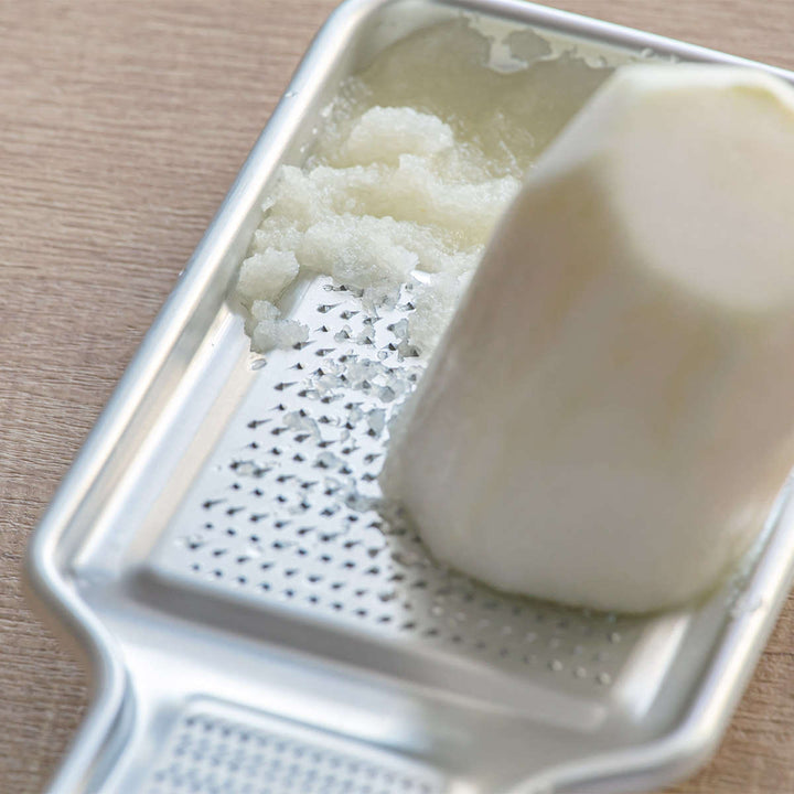 刃が鋭いのでおろした時に繊維が絡みにくく、水分を含んだ状態のまま切るようにすりおろすことができます。風味を損なわず、素材本来のやわらかい食感と味わいをそのままに食卓で味うことができます。