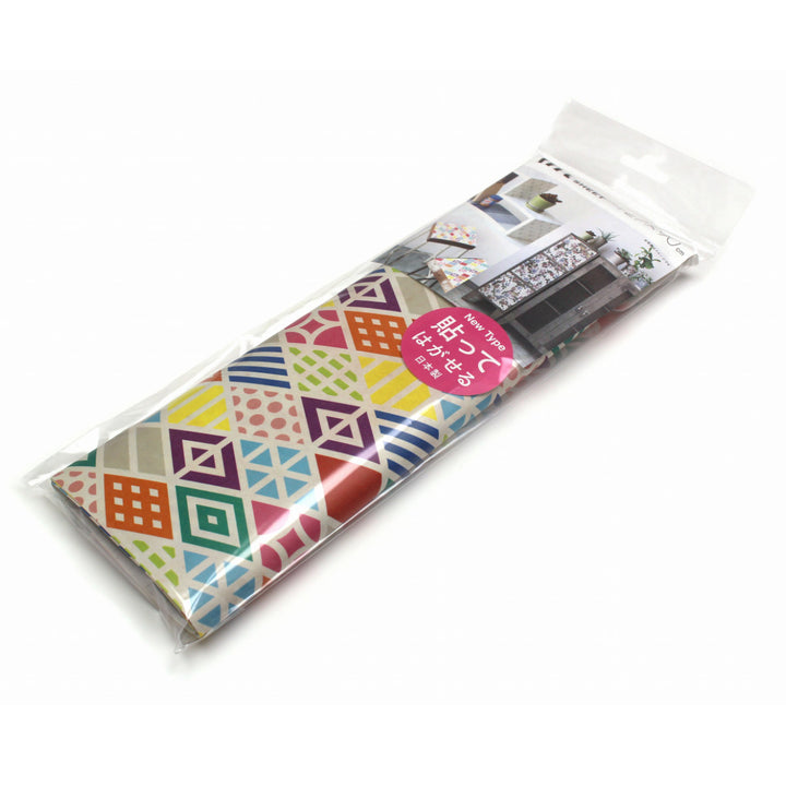 一味違ったデザインで存在感抜群のカラフルなダイヤ柄です。 幅27cm×長さ90cmの程よいサイズ感で、チェアの座面に貼ったり、収納ボックスや小物ケースに貼るだけで、お部屋にアートな空間が生まれます。壁の一部分だけ素材や色を変えるアクセントウォールとしてもおすすめです。空間をアレンジして日々の暮らしを心豊かに過ごしませんか?