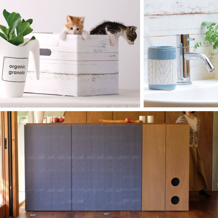 貼ってはがせるおしゃれなリメイクシートです。好きなデザインのリメイクシートをシールのように貼るだけで、誰でも簡単にDIYを楽しむことができます。普段お使いの生活雑貨から、家具・壁紙まで自分好みにカスタマイズできます。