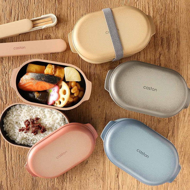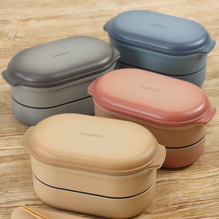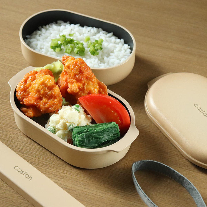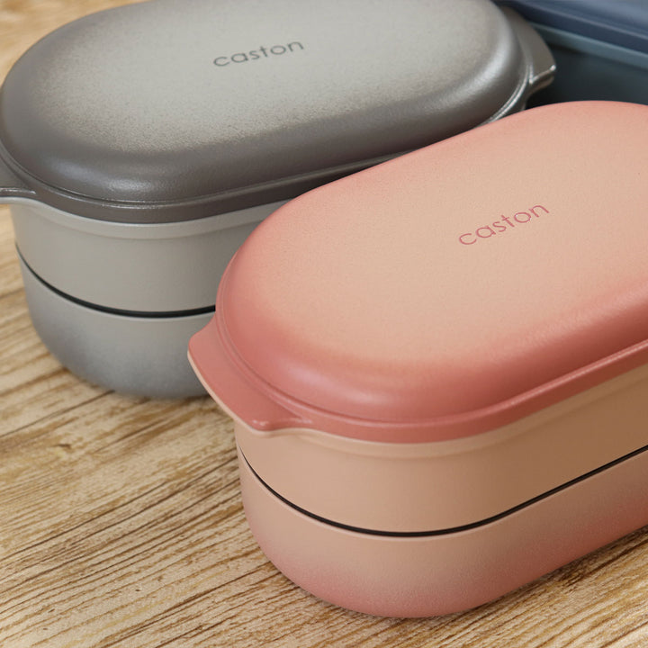 鋳物琺瑯のキッチンウエアを彷彿とさせるシルエットがお洒落な二段弁当箱です。お弁当箱には見えないデザインで、まるでカフェのようなランチ気分が楽しめます。