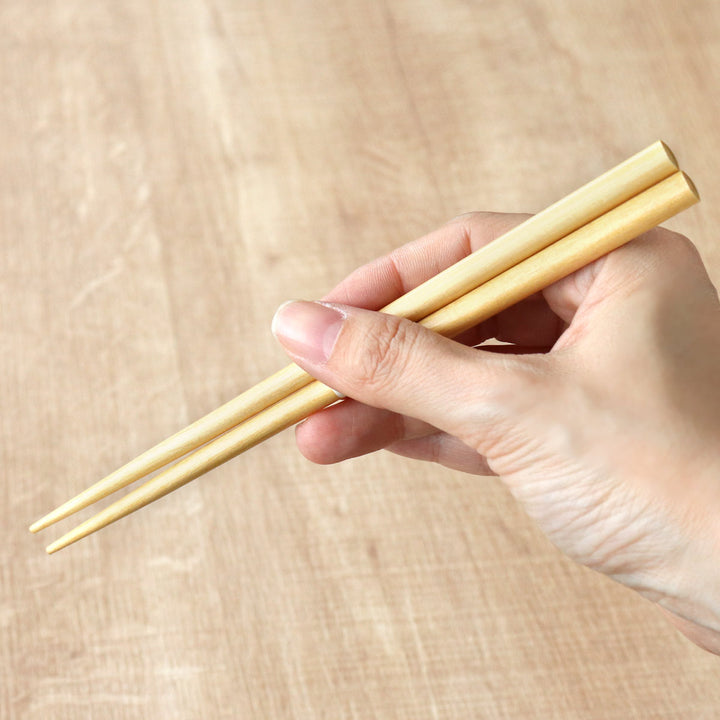 お箸は天然木を使用しており、ポリエステル塗装が施されているので食洗機で洗うことができます。お箸の長さはお子様から大人の方まで幅広くお使いいただける約18cmです。