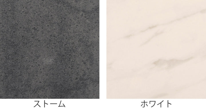 天板は、ストームとホワイトの2色からお選びいただけます。上質なモノトーン柄で落ち着きのあるカラーリングのストーム、光沢があり、大理石のような柄で高級感があるホワイト。お部屋の雰囲気に合わせてお選びください。