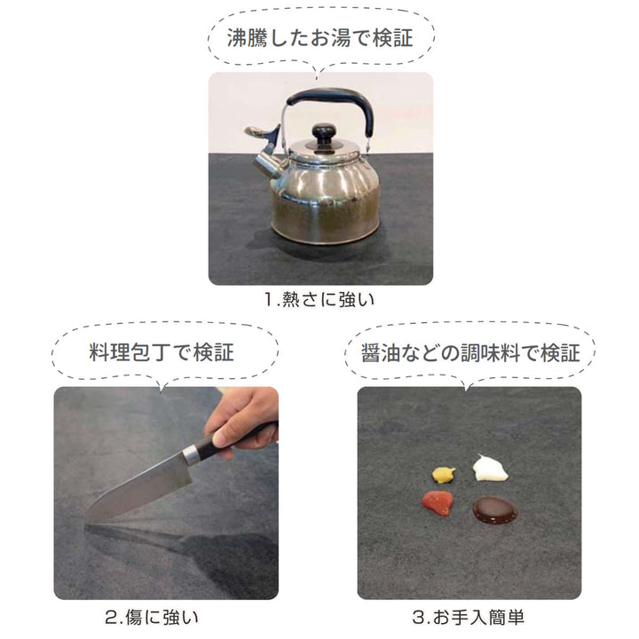 セラミックは高温で焼き上げる為、熱に強く、熱い鍋などを置いても変色や変形が起こりにくいです。