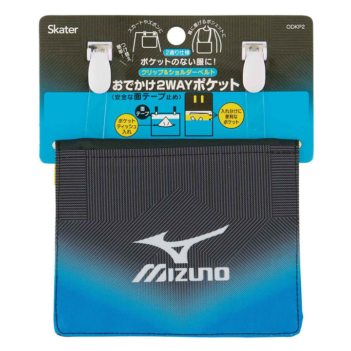 おでかけの際にハンカチやティッシュ・小物などを持ち運ぶのに便利なクリップ&ショルダーベルトの2way仕様のおでかけポケットです。おしゃれなミズノのロゴと一緒にお出かけができます。