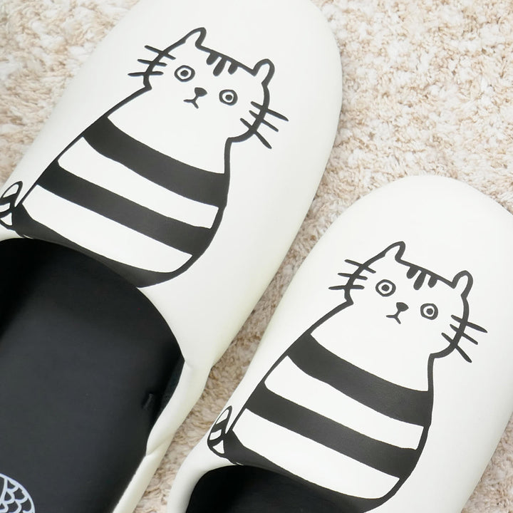 キョトンとした顔のネコちゃんが描かれてて、スリッパを履く度にかわいいネコちゃんに心が和みます。