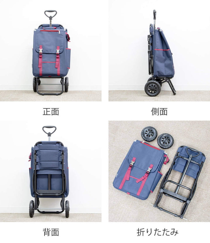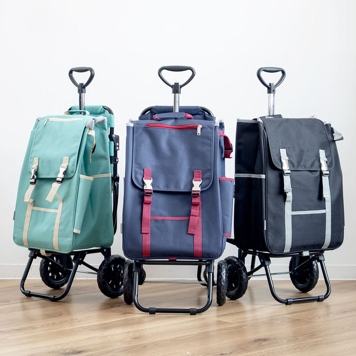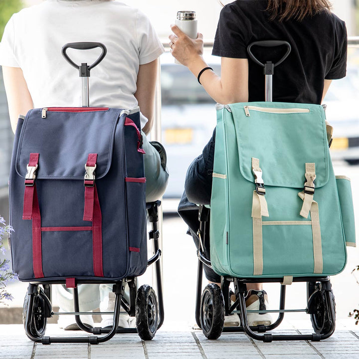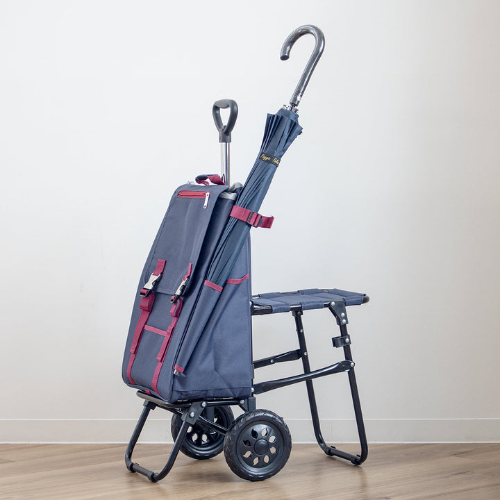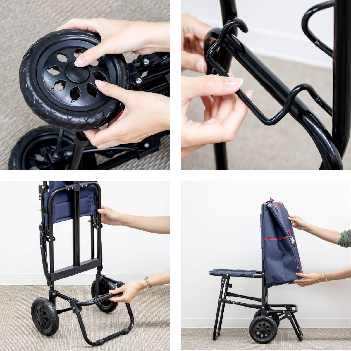 重い荷物を運ぶのに重宝するショッピングカートに、気軽に一休みできる折りたたみ椅子の機能をプラスしました。近所へのお出かけでもふと休みたくなる、そんな時に寄り添ってくれる心強いカートです。バスや電車の待ち時間、ピクニックやアウトドア、運動会等のイベントなど様々な場面で活躍します。