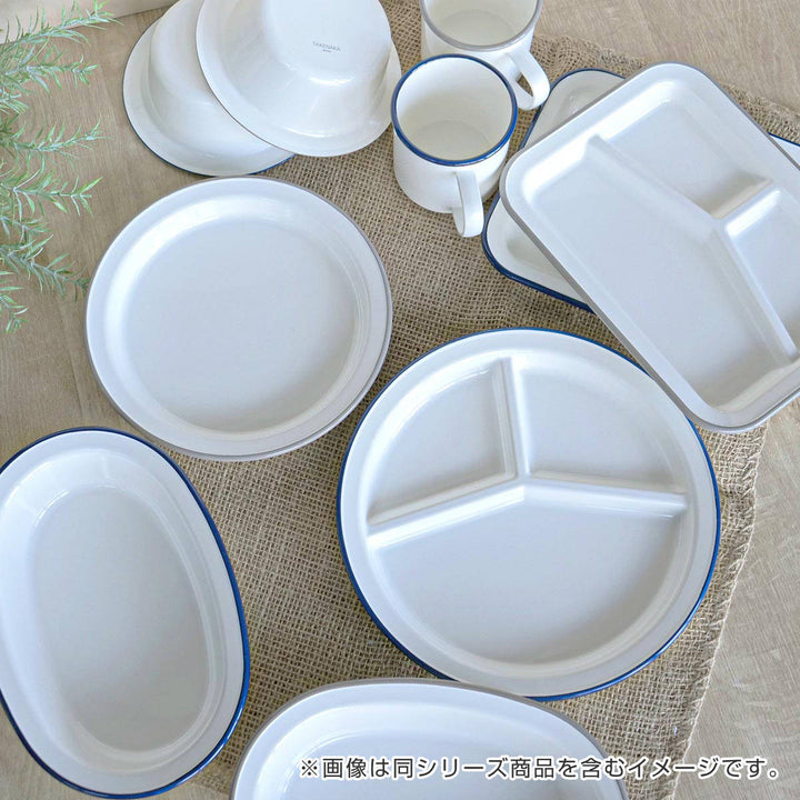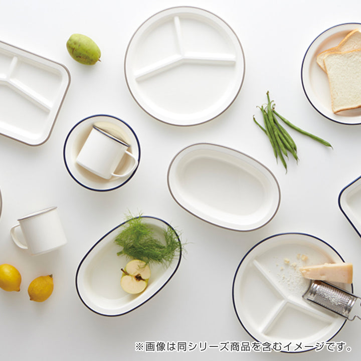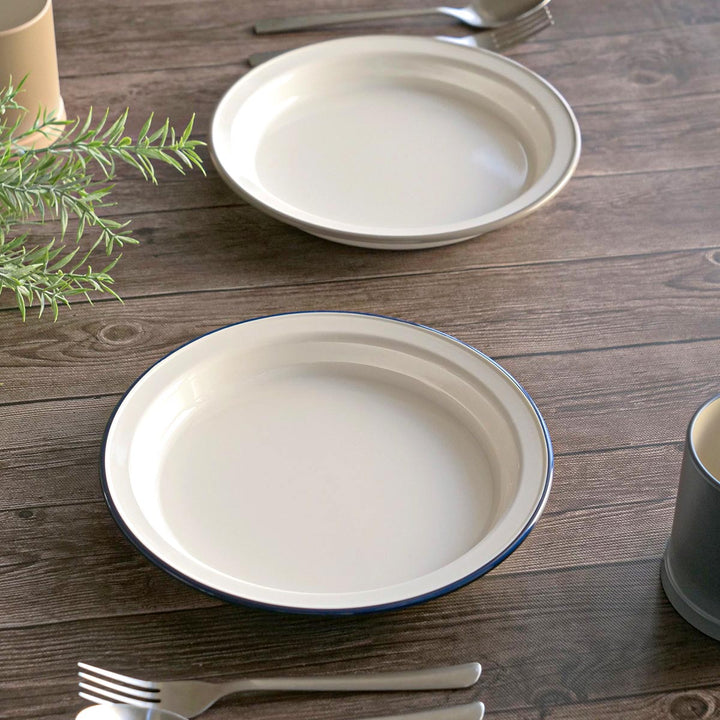 まるでホーローのような見た目が可愛い、プラスチック製のプレートです。一人前のパスタやオムライスなどにちょうどいいサイズです。モーニングプレートやワンプレートランチなど幅広いシーンで活躍してくれます。普段使いにはもちろん女子会やホームパーティーにもぴったりです。