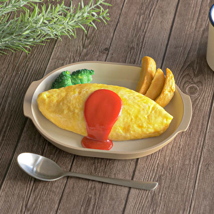 プラスチック製のプレートです。一人前のオムライスやハンバーグなどのおかず、軽く済ませたいワンプレートランチにちょうどいいサイズ感です。深さがあるのでたっぷりソースがかかったおかずにも便利です。落としても割れにくいので普段使いにはもちろん、キャンプやバーベキューなどのアウトドアシーンにも活躍します。