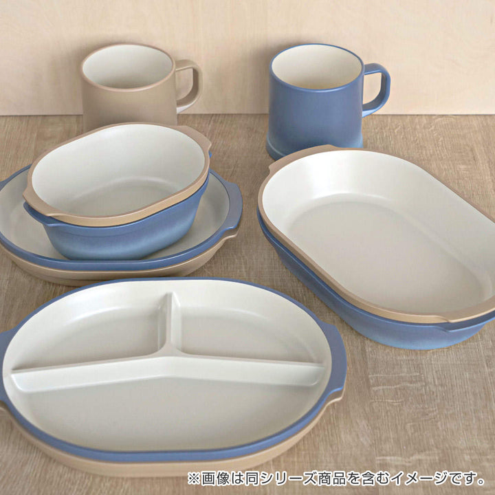 落ち着いたくすみカラーのグラデーションと取っ手付きのデザインがお洒落なキャストンシリーズ。内側は料理を引き立てる優しいニュアンスカラーで仕上げました。シリーズで揃えて、おうちでカフェ風の食卓を楽しむのもおすすめです。