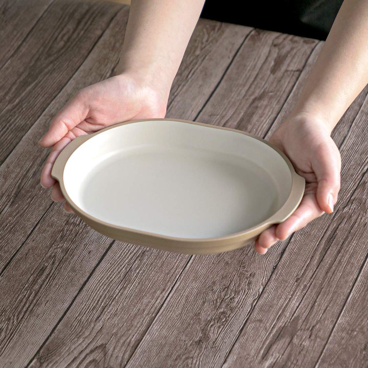 持ち手がついているので温かいお料理を運ぶ際に便利です。お子様も安心してお使いいただけます。