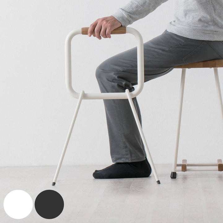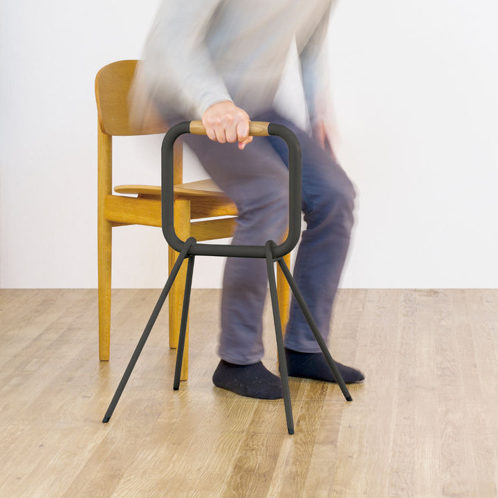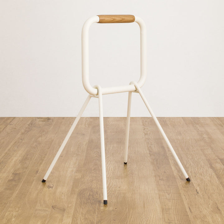 椅子や床からの立ち上がりを快適にサポートしてくれる据え置きタイプの手すりです。座った状態からでも楽に立ち上がることができ、膝や腰への負担が軽減されます。側に居ると安心する存在でありたい、支えたい想いを形にした家族のような手すりです。