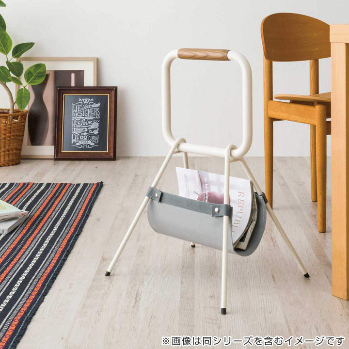 別売りのトレー・マガジンラックを使用すれば、ちょっとした収納をプラスすることができます。眼鏡や携帯、リモコンなどよく使う小物や新聞・雑誌類を手の届くところに置くことができる便利なアイテムです。