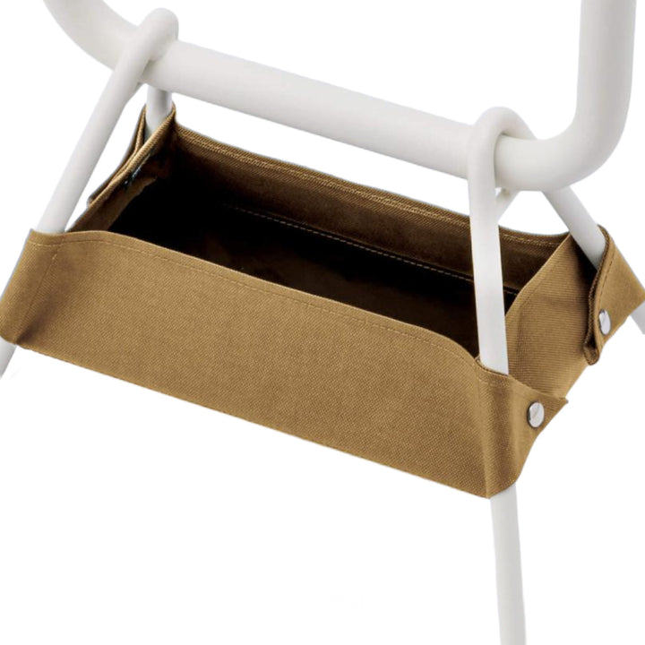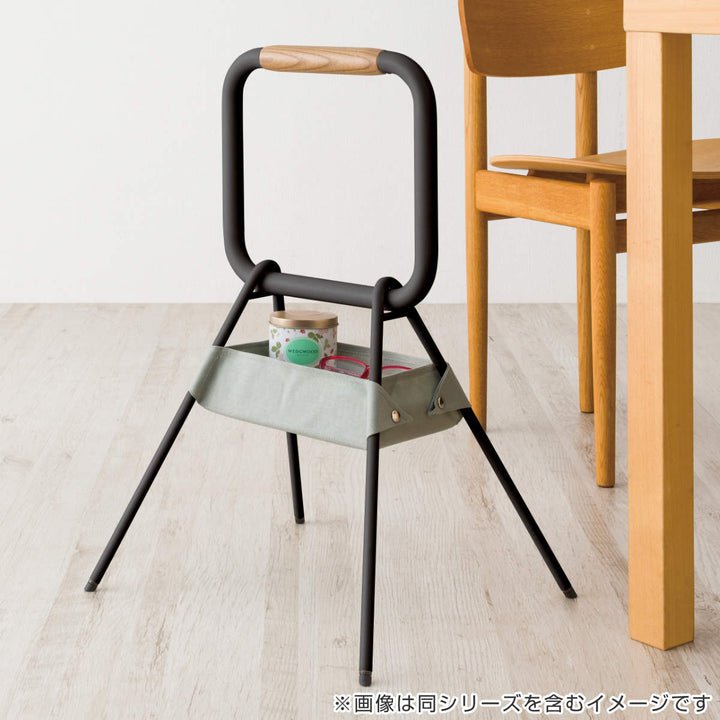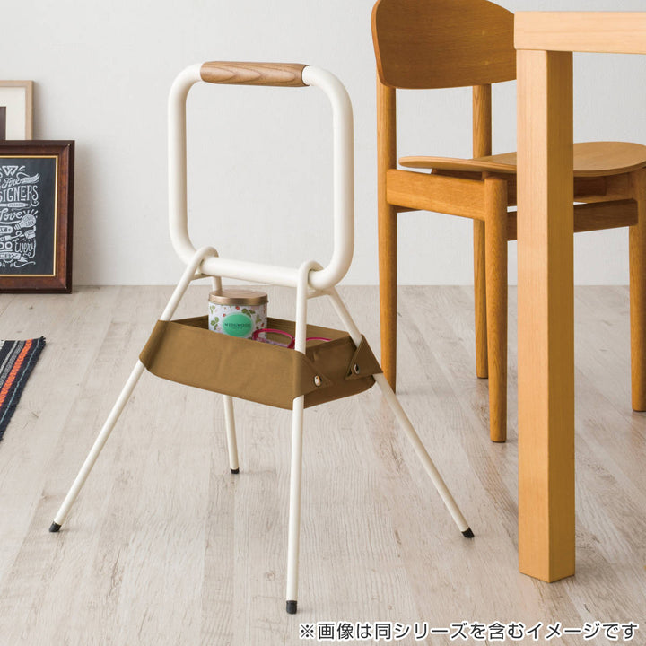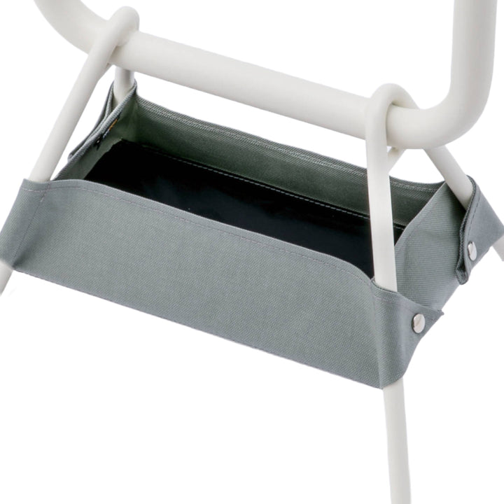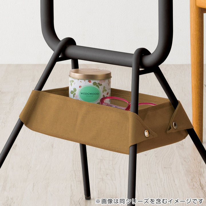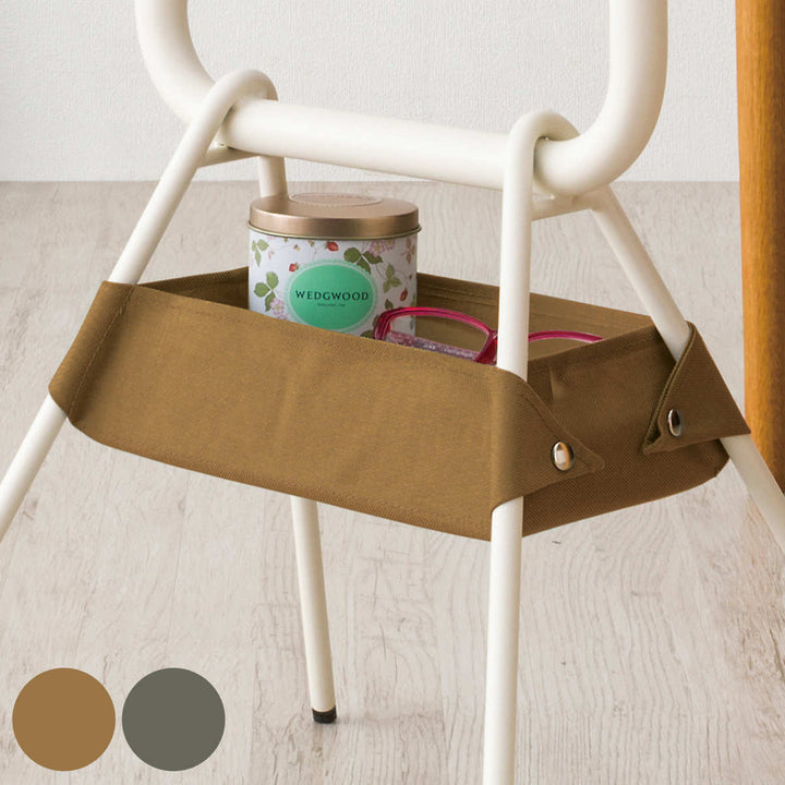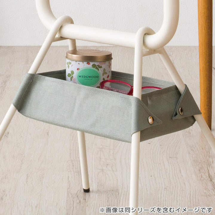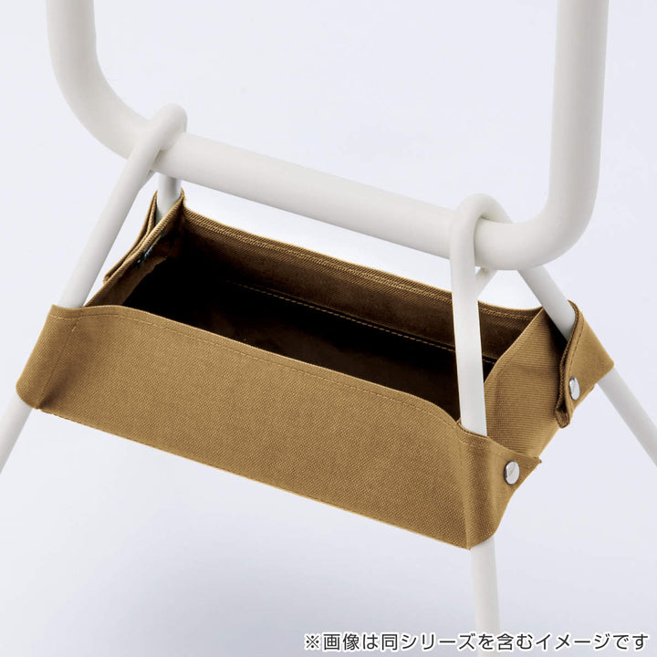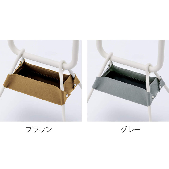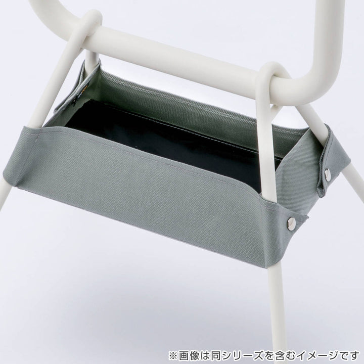 手すりに馴染む、無駄のない洗練されたデザインで、お部屋のインテリアに溶け込みます。ボタンで留めるだけで簡単に設置ができます。トレーには底板が付いているため、物を収納しても型崩れしにくいです。