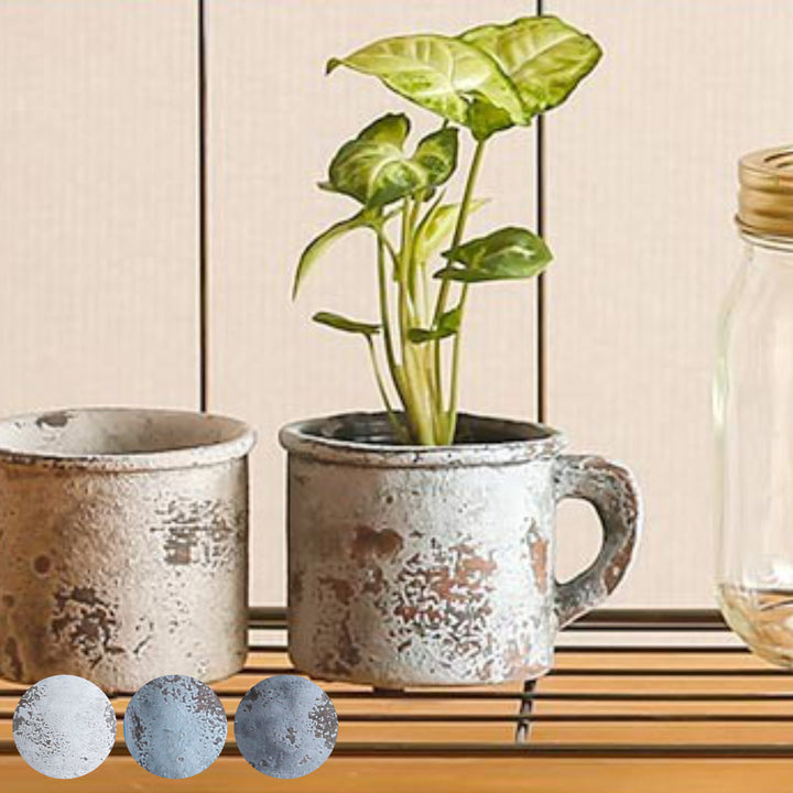 時を重ねた建物の壁のような深みのあるアンティーク質感のあるプランターです。ナチュラルテイストでは物足りないという方にもぴったりなセメントポットシリーズです。