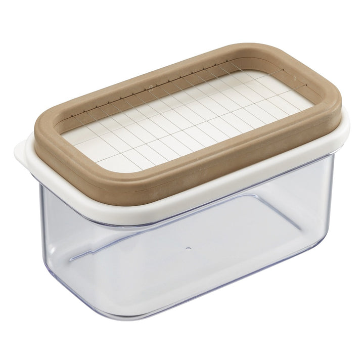 箱やアルミフィルムが傷みやすく、なかなかきれいに使えない市販のバターをカットして保存できるバターケースです。ワイヤープレートにバターを置いてフタでギューっと押すだけなので、手を汚さずにバターをうす切りにカットできます。450gの業務用バターもしっかり入る大容量タイプなので、よくバターを使うご家庭やお菓子作りをするご家庭にピッタリです。
