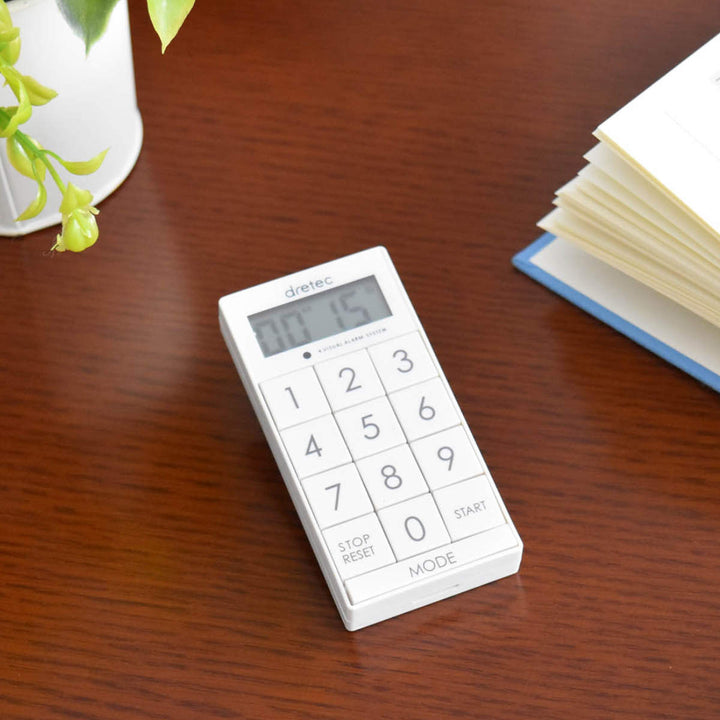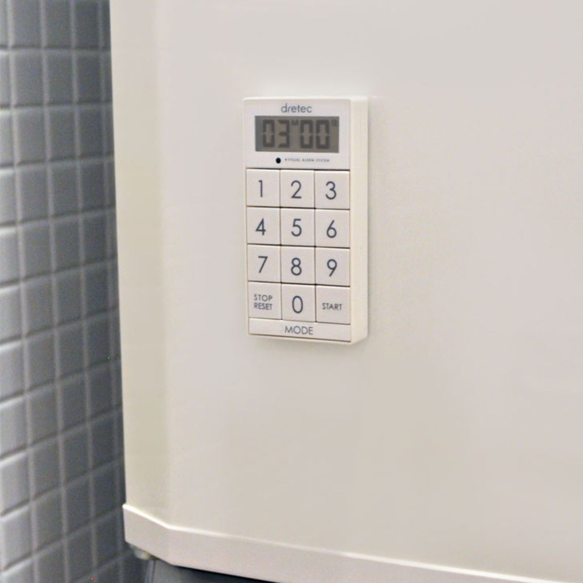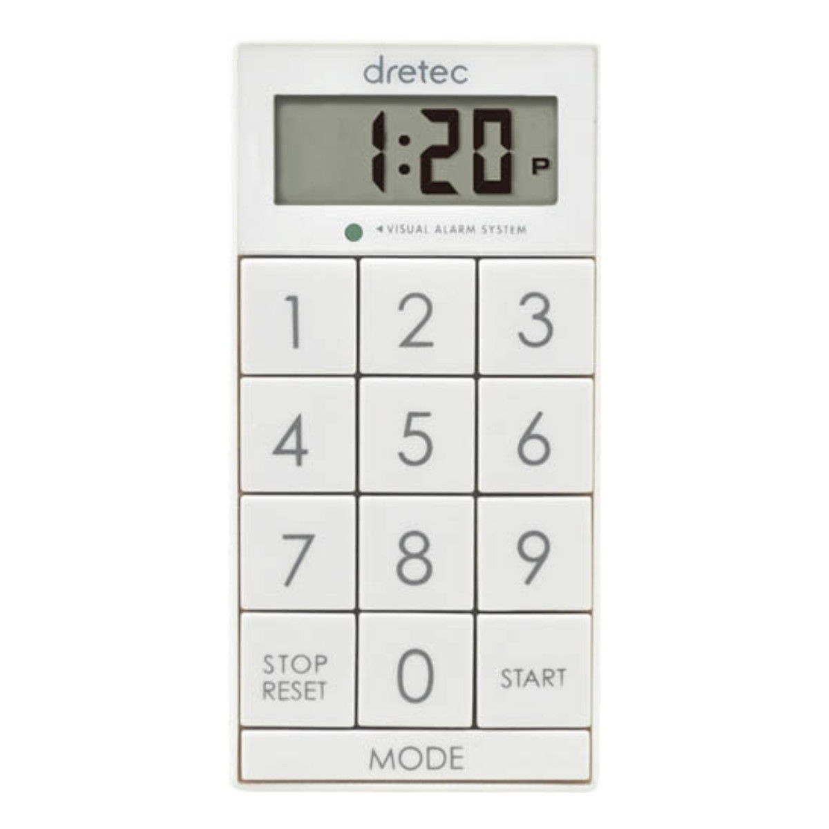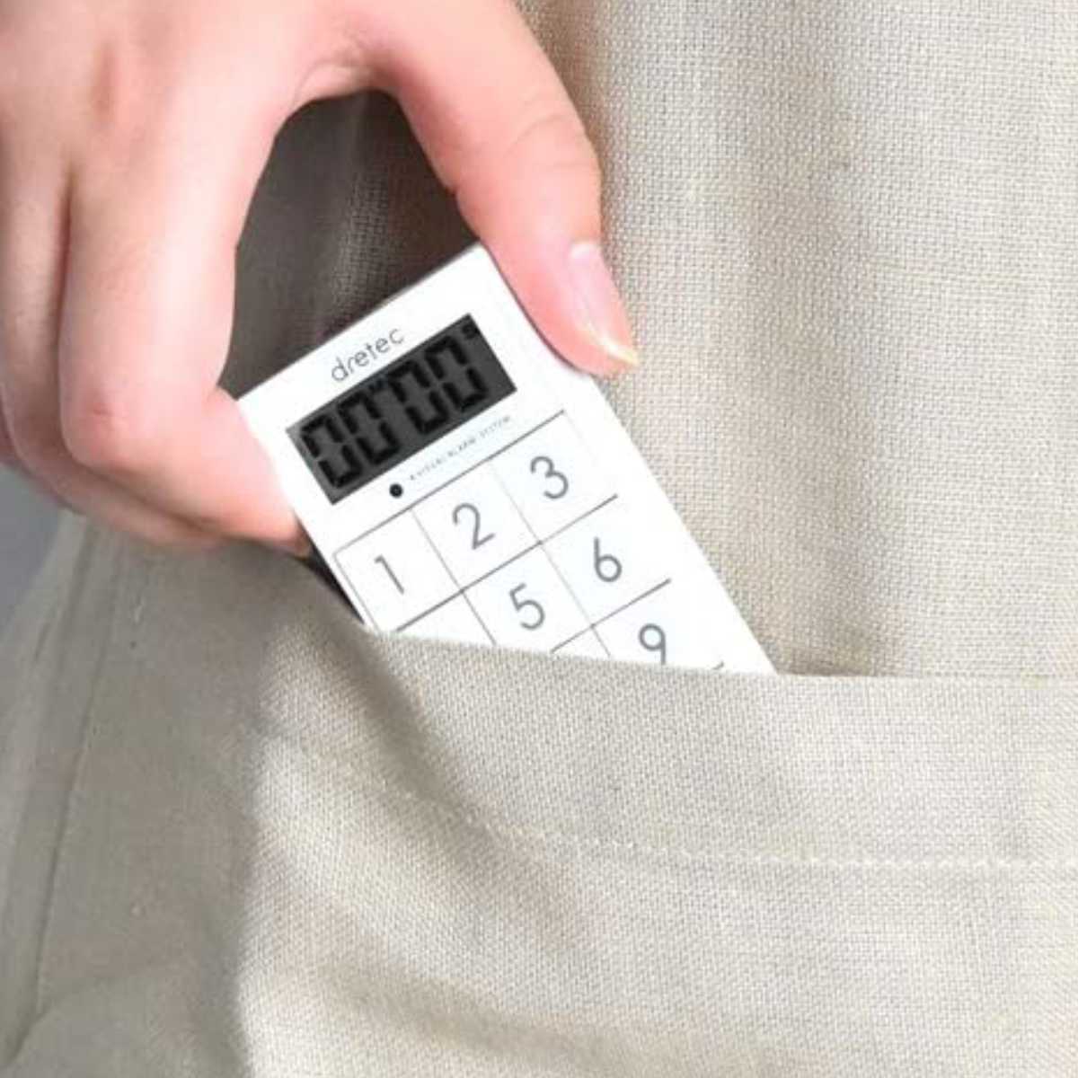 調理中に片手で使えるスリムなキッチンタイマーです。カウントアップ、カウントダウン、リピート機能があり、料理だけでなく勉強やストレッチなど様々な場面で活躍します。キッチンクロックとしても使える時計モード付きです。10キータイプなので1秒単位でセットでき、最大99分99秒までセットできます。