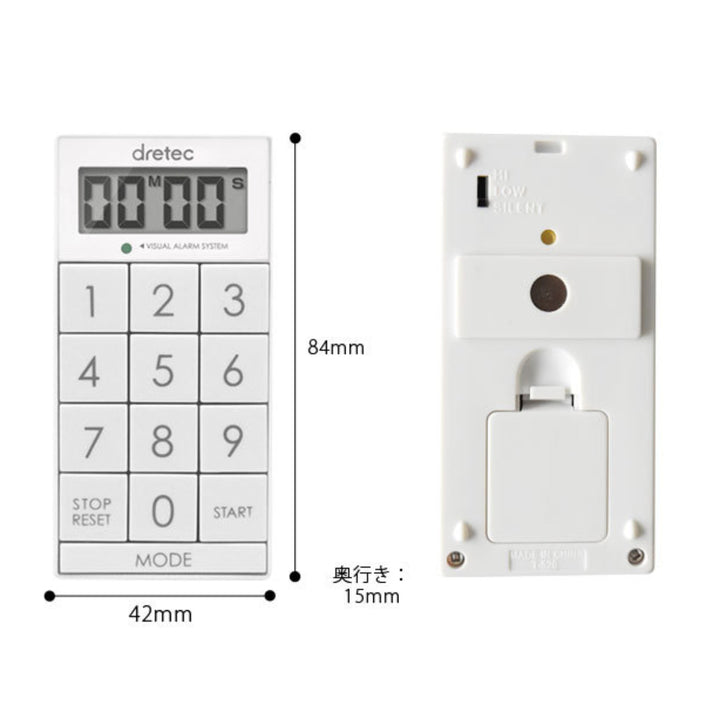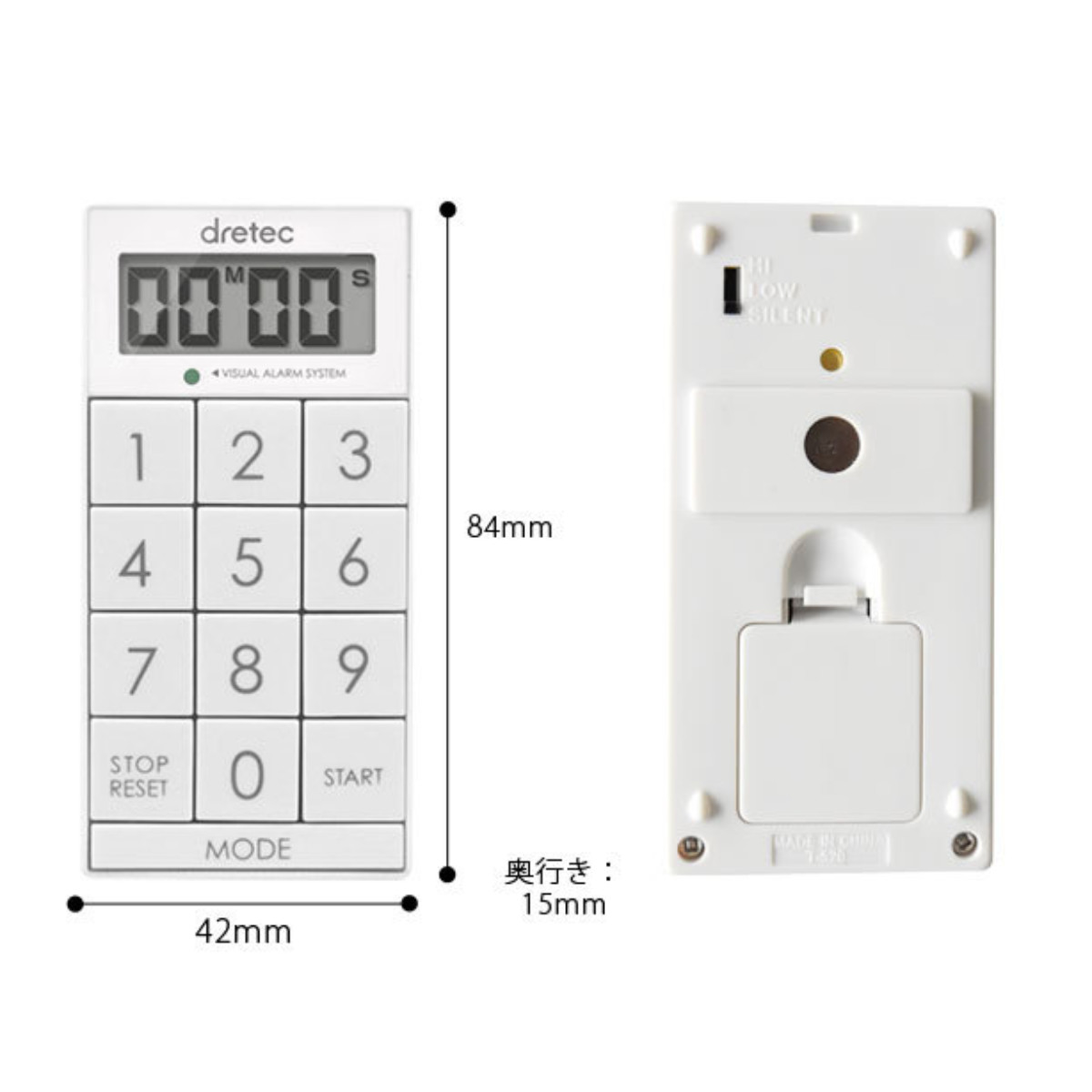 | 備考 | 電源:リチウム電池(CR2025)×1個 表示方法:液晶デジタル4桁 アラーム鳴動時間:約1分間 最大セット時間:99分99秒 最大計測時間:99分59秒 動作温度範囲:0度から40度 オートパワーオフ:約10分 |