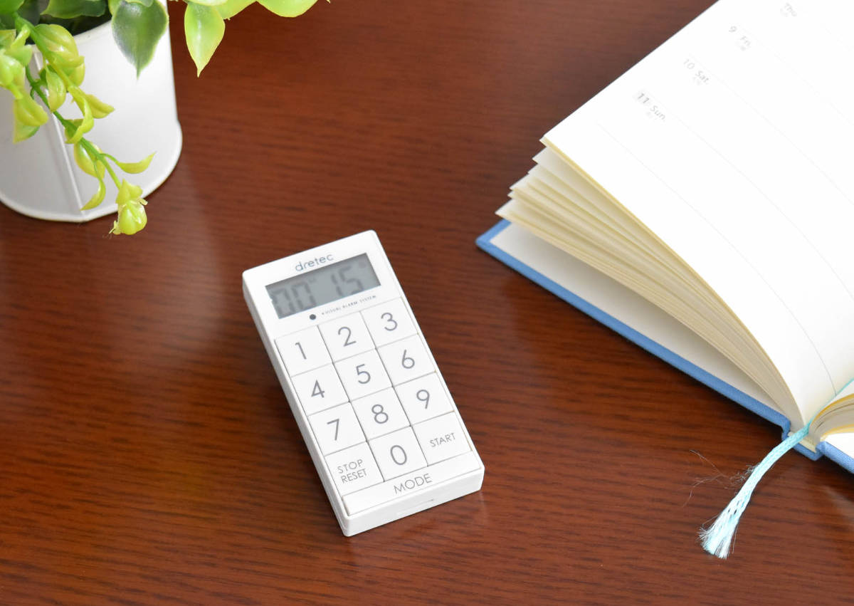 時計機能が付いているので、お子様の学習机などに置けば勉強時間の「見える化」が図れます。セット時間の10分前、5分前になると知らせてくれる予告アラーム付きです。