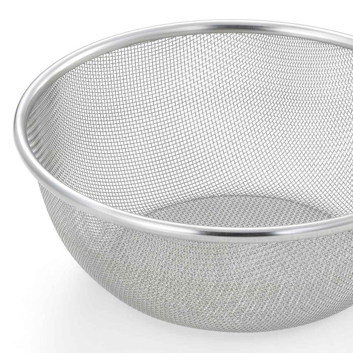 耐久性・耐食性に優れたステンレス製です。網目は14メッシュと細かいので、麺なども飛び出すことなく水が切れます。
