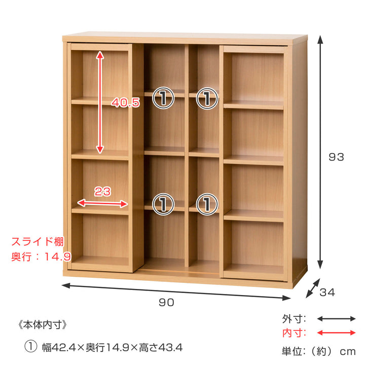 コミックラック 本棚 スライドシェルフ 深型 幅90cm
