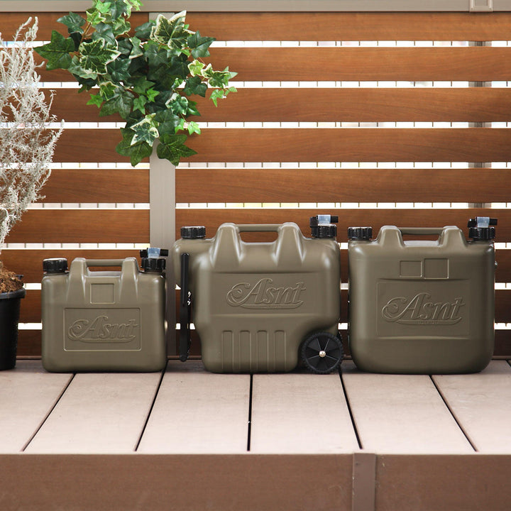 ASNTタンクには3つのシリーズ展開があります。人数、用途に合わせて選ぶことができます。お洒落なミリタリーカラーのウォータータンクなので、アウトドアの雰囲気を盛り上げてくれること間違いなしです。