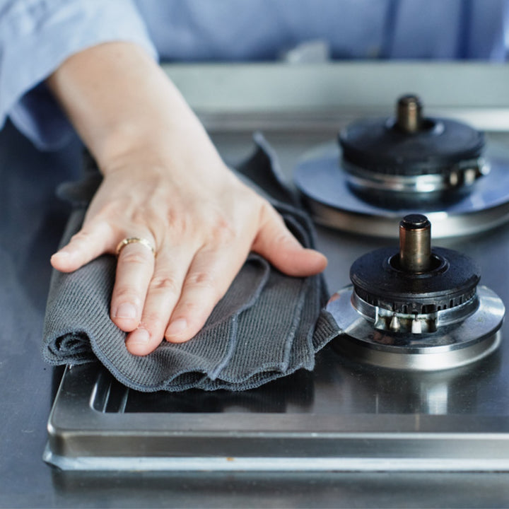 洗剤を使わずに汚れを落とすので、毎日手軽にお掃除できるクロスです。凹凸のあるパイル調クロスがキッチン周りの水アカや油汚れ、くもり汚れを拭き取ってピカピカにします。ガスコンロやIHヒーター、調理家電(電子レンジ、炊飯器、冷蔵庫)などキッチン周り全般の清掃にお使い頂けます。