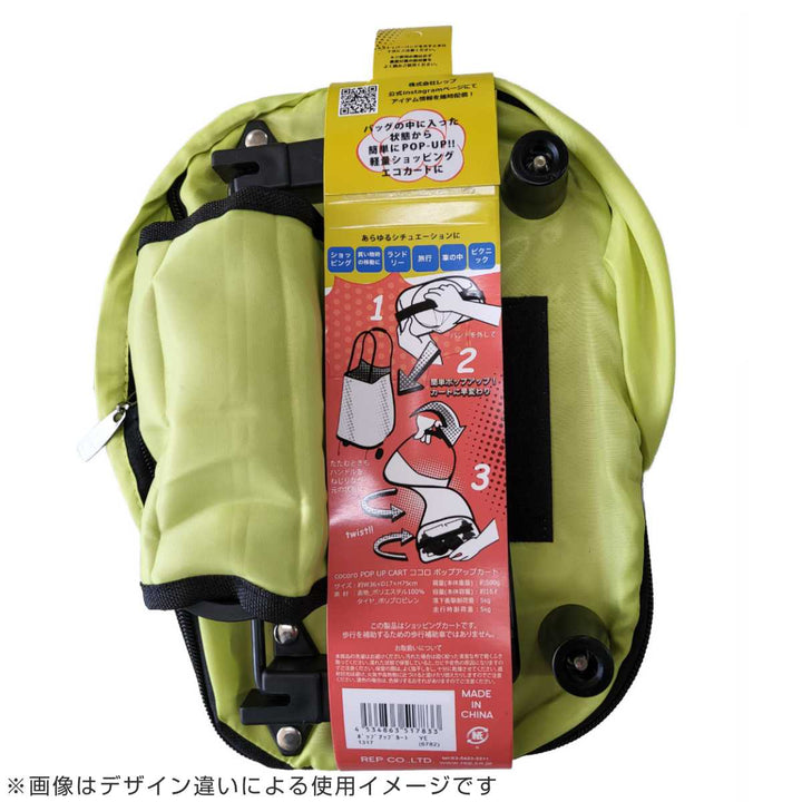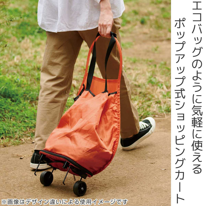ポップアップ式でコンパクトな状態から簡単に組み立てられるショッピングカートです。500gととても軽量で折り畳んだ時のサイズは約26×17cm、普段使いのバッグにもすっぽり入るサイズ感なのでエコバッグと同じ感覚で使用していただけます。いろんなポーズのネコが描かれた可愛いデザインです。